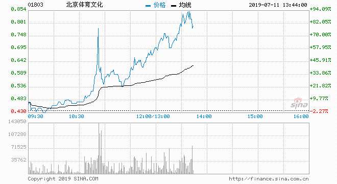 7月11日消息,北京體育文化今日股價(jià)強(qiáng)勢(shì)反彈,大漲88.64%,最新市值10.61億港元。本周一,北京體育文化閃崩,暴跌80%。