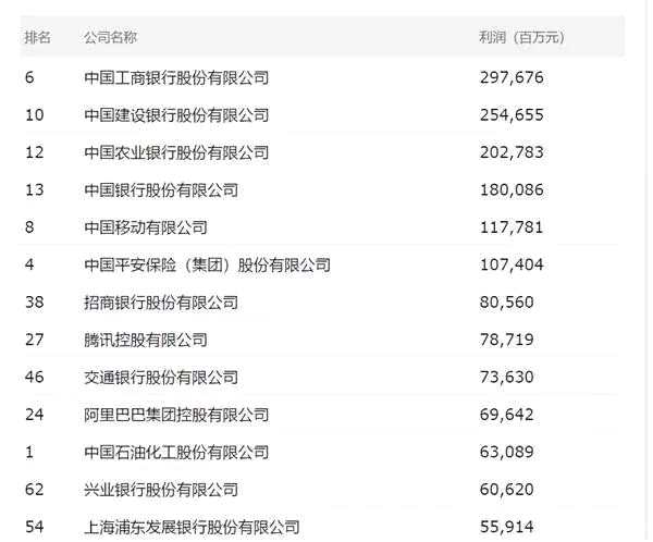 2019年最賺錢的10家公司,除“工建農中”4大銀行及其他商業(yè)銀行外,還包括中國移動和中國平安保險。騰訊以年利潤787.19億元位列“最賺錢的40家公司”的第8位,成為互聯(lián)網企業(yè)中最賺錢的公司;阿里巴巴位列第二名,利潤為696.42億元。
