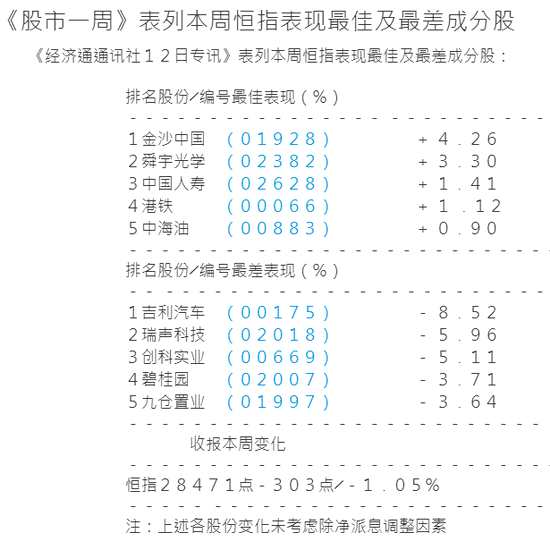 港股周跌1%終止5連升 安踏為最差國(guó)指吉利為最差藍(lán)籌