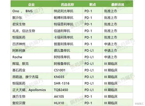 國內(nèi)已經(jīng)上市及接近上市的PD-1/PD-L1產(chǎn)品