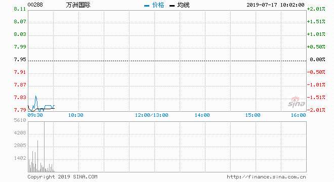 摘要: 豬肉股全線受壓,其中萬洲國際(00288)暫為表現(xiàn)最差藍(lán)籌股,現(xiàn)報(bào)7.78元,跌2.14%,盤中低報(bào)7.76元,再穿廿天(約7.92元)、十天(7.818元)及百天線(7.862元),暫成交達(dá)79萬股