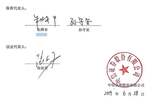 證監(jiān)會(huì)指出,中信證券從7月1日到3日提交的7版招股說(shuō)明書(shū)注冊(cè)稿及反饋意見(jiàn)落實(shí)函的簽字蓋章日期均為2019年7月1日,日期簽署與實(shí)際時(shí)間不符。