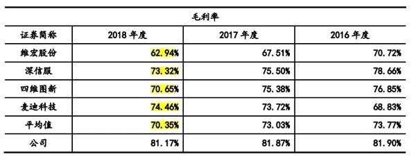 但在6月28日遞交的注冊(cè)稿中,對(duì)2018年度可比較公司的毛利率進(jìn)行了刪減。