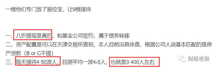 事發(fā)后,大批投資人奔赴現(xiàn)場(chǎng),據(jù)現(xiàn)場(chǎng)消息,平臺(tái)聯(lián)合基金公司,以8折的價(jià)格收割了大量恐慌投資人的投資本金。