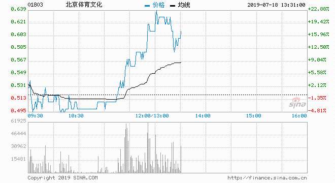 北京體育文化(01803)現(xiàn)價升23.08%,報0.64元;成交約1.35億股,涉資7487萬元,主動買盤83%。