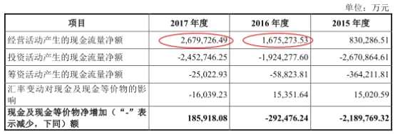 2018年6月19日?qǐng)?bào)送的招股書(shū)顯示,中廣核電力2016年、2017年實(shí)現(xiàn)經(jīng)營(yíng)活動(dòng)產(chǎn)生的現(xiàn)金流量?jī)纛~分別為167.53萬(wàn)元、267.97萬(wàn)元。