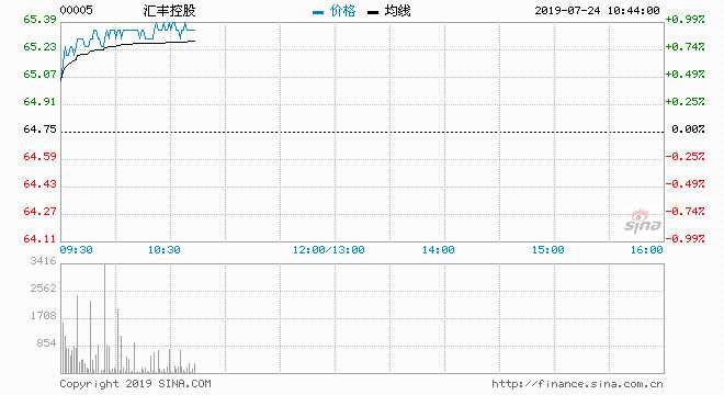 港股上升逾200點受惠美股上升,英國新首相上場,市場料英國硬脫歐風險增加,惟歐洲相關股未見受影響,反而隨市而上,匯豐控股(00005)現價升0.77%,報65.25元,盤中高見65.35元,破五十天(約64.899元)、十天(約64.985元)、百天線(64.989元)及廿天(約65.028元);成交約181萬股,涉資1.18億元。