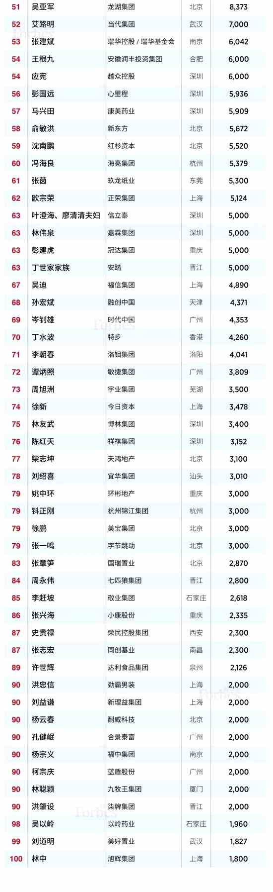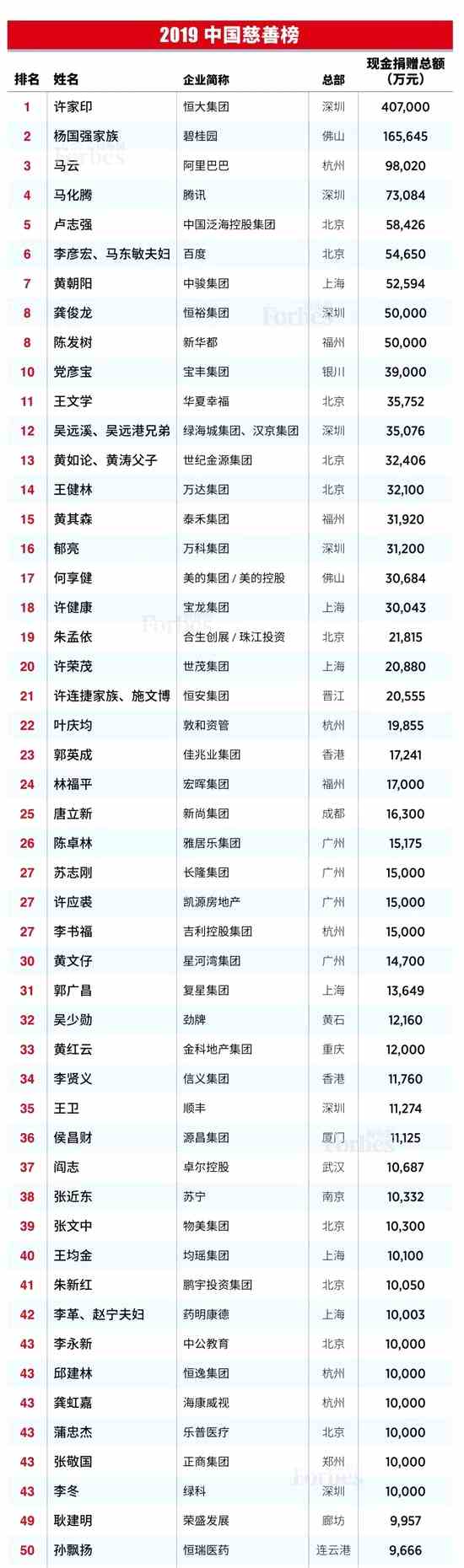 2019福布斯中國慈善榜全榜