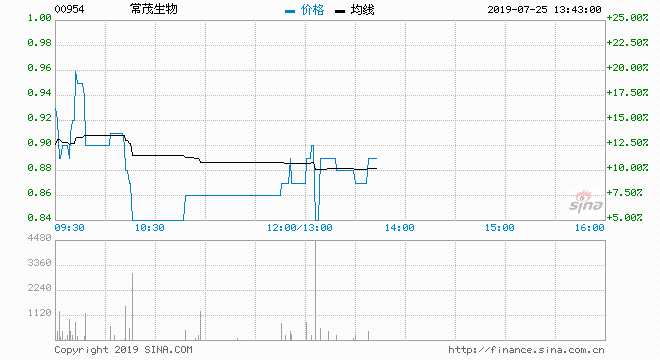 常茂生物(00954)現(xiàn)價升10%,報0.88元;成交約235萬股,涉資207萬元.盤中高見0.96元,升破50天線(0.827元)及百天線(0.825元)。