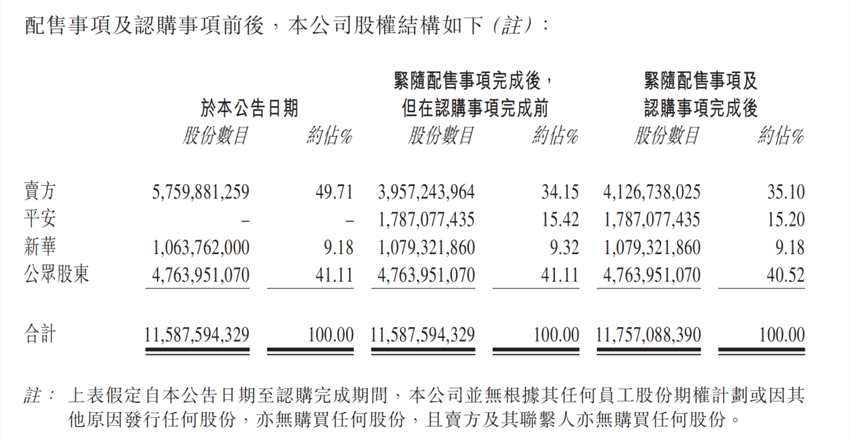 具體來看,中國金茂、中化香港及平安人壽協(xié)議,平安人壽購買約17.87億股配售股份,占中國金茂現(xiàn)有發(fā)行股本約15.42%,配售價(jià)為4.8106港元/股,占中國金茂經(jīng)認(rèn)購事項(xiàng)擴(kuò)大后的已發(fā)行股本15.20%。并且,中國金茂附條件同意發(fā)行且中化香港(集團(tuán))有限公司(以下簡稱為“中化香港”)附條件同意認(rèn)購約1.54億股平安人壽認(rèn)購股份,認(rèn)購價(jià)為4.8106港元/股。