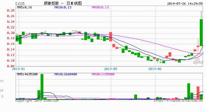 摘要: 7月26日消息,順泰控股股價(jià)拉升漲64.9%,報(bào)0.249港元,成交額為61.12萬,最新市值6億港元。此前順泰控股公布,截至2018年12月31日止年度全年虧損2649.8萬元(2017年度虧損1.