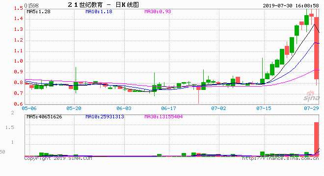 7月30日晚間,21世紀(jì)教育(01598)股價(jià)全天振幅接近50%,成交量1.62億股,成交額超過2億港元。