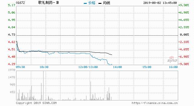 歌禮制藥(01672)現(xiàn)價跌7.19%,報4.39元,盤中低見4.37元,創(chuàng)歷史新低;成交約166萬股,涉資744萬元.該股連暫跌八日,以現(xiàn)價計,累挫20.9%。