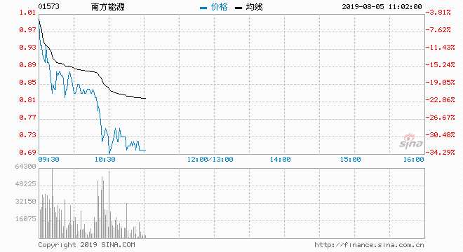 南方能源(01573)上日急跌近九成,今日再挫,最新跌兩成,報0.84元;成交約9141萬股,涉資8081萬元。