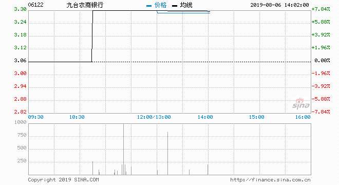 九臺農(nóng)商銀行逆市升近8% 破10天及20天線