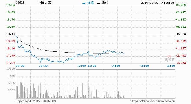 中國人壽(02628) 18.00元 跌2.39%