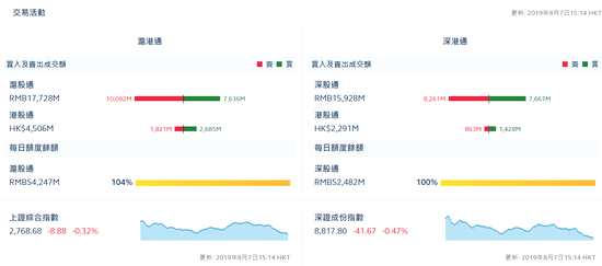 深港通資金流向方面,深股通凈流出5.94億,港股通(深)凈流入暫為5.65億。