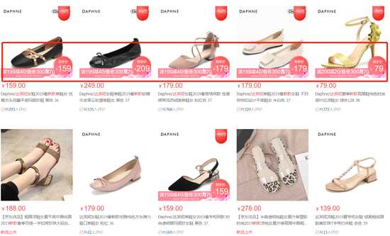 為了清理庫存,“漂亮不打折,美麗100分”的達(dá)芙妮也開始了瘋狂的打折。線下,買一送一,低至99元起成為達(dá)芙妮的常規(guī)操作,在拼多多、唯品會上出售尾貨也成了必要的選擇。記者發(fā)現(xiàn),拼多多上達(dá)芙妮專賣店的鞋類產(chǎn)品從14元到62元不等。