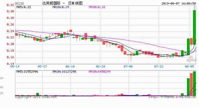 8月7日消息,在2012年高峰期,達(dá)芙妮旗下品牌總門店數(shù)一度接近7000家,如今,達(dá)芙妮的門店已經(jīng)不足3000家。從2012年開始,公司股價(jià)從最高11.72港元一路狂跌到7月9號的0.15港元,區(qū)間跌幅99%,從近200億市值一路蒸發(fā)到最低的2.47億港元。不過,曾經(jīng)的“女神”落寞之后,達(dá)芙妮今日尾盤卻暴漲52.5%,市值5億港元。業(yè)績巨虧、股東減持、董事離任、股價(jià)暴跌的達(dá)芙妮迎來了什么好消息?