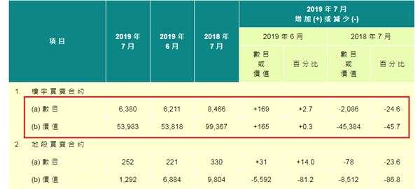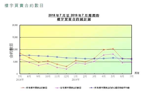 近日,香港土地注冊處發(fā)布的7月份統(tǒng)計數(shù)據(jù)顯示,7月份所有類型房屋交易數(shù)量為6380套,同比下跌24.6%;所有類型房屋交易總額為540億港元,同比大跌45.7%。