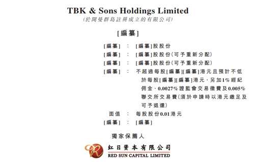 8月7日消息,馬來西亞土木及結(jié)構(gòu)工程承包商TBK&Sons Holdings Limited(特百克父子控股有限公司)向香港聯(lián)交所遞交上市申請,獨家保薦人為紅日資本。