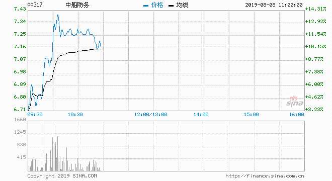 【中船防務(wù)(600685)、股吧】(600685)(00317)現(xiàn)漲13.38%,報7.37元,盤中高見7.42元,突破250天(約6.679元)、五十天(約6.949元)、十天(約7.124元)及廿天線(約7.364元);成交約148萬股,涉資1048萬元。