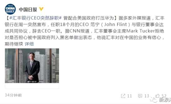 據(jù)CNN報(bào)道,匯豐董事會(huì)主席Mark Tucker拒絕對(duì)是否擔(dān)心被中國(guó)政府列入黑名單做出表態(tài),他說(shuō)匯豐對(duì)在中國(guó)的業(yè)務(wù)有信心,期待繼續(xù)支持中國(guó)的經(jīng)濟(jì)發(fā)展。此前,匯豐銀行為了避免自己被美國(guó)司法部因其他問(wèn)題起訴,同意配合美國(guó)政府羅織可以打壓華為“證據(jù)”,導(dǎo)致孟晚舟在加拿大被抓。任正非也在不久前的媒體訪談中確認(rèn)了此事。