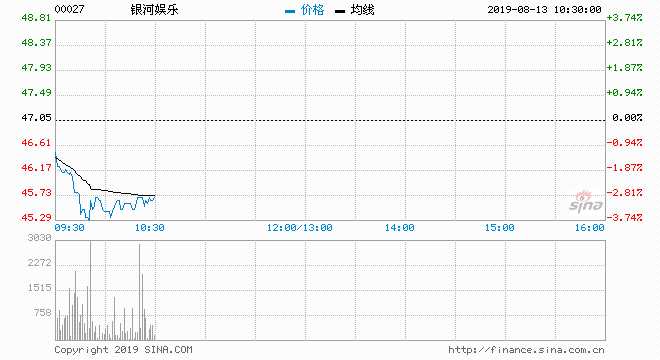 銀河娛樂(lè)(00027) 45.40元 跌3.51%