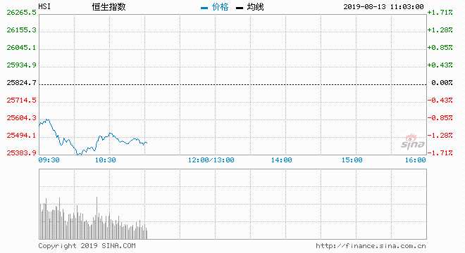 香港銀行股拖累恒指曾跌400點(diǎn) 現(xiàn)跌372點(diǎn)報(bào)25451點(diǎn)