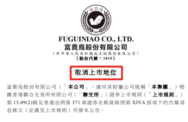 8月12日,富貴鳥(niǎo)發(fā)布公告稱(chēng),2019年8月9日,聯(lián)交所向公司發(fā)出函件,告知公司股份的最后上市日期將為2019年8月23日,而股份上市地位將于2019年8月26日上午九時(shí)起取消。公司現(xiàn)正尋求法律意見(jiàn)并可能根據(jù)上市規(guī)則第2B章就取消上市地位決定提交上市覆核委員會(huì)作進(jìn)一步及最終覆核。