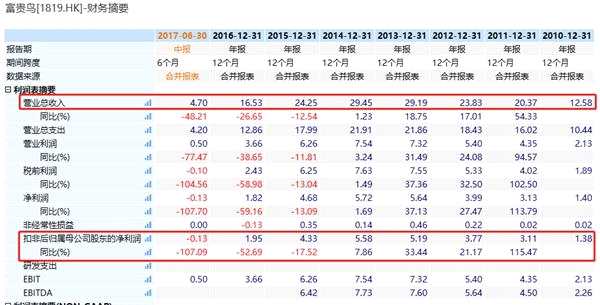 此前,富貴年停牌近3年。期間,富貴鳥(niǎo)營(yíng)業(yè)額和利潤(rùn)跌跌不休:從近30億的營(yíng)業(yè)額跌至2017年中的不足5個(gè)億;凈利潤(rùn)在2016年凈利減少超50%至1.95億,2017年上半年,由盈轉(zhuǎn)虧,并隨后無(wú)更新。
