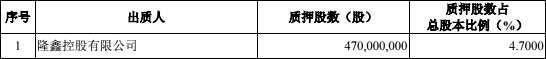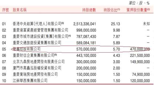 據重慶農商行2018年年報顯示,截至2018年末,隆鑫控股為該行第五大股東,持股數量為5.70億股,持股比例為5.70%。截至2018年末,隆鑫控股質押股份數量為4.70億股。
