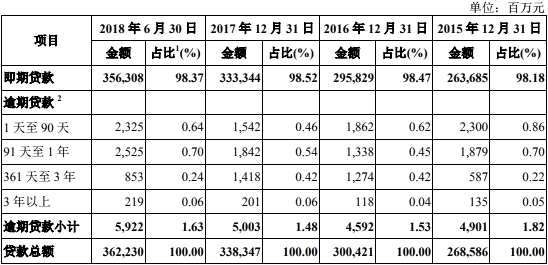 其中,逾期3個月以內金額分別為16.86億元、23.00億元、18.62億元、15.42億元、20.28億元,逾期3個月至1年金額分別為8.85億元、18.79億元、13.38億元、18.42億元、22.56億元,逾期1年以上3年以內金額分別為2.14億元、5.87億元、12.74億元、14.18億元、9.42億元,逾期3年以上金額分別為2.34億元、1.35億元、1.18億元、2.01億元、2.95億元。
