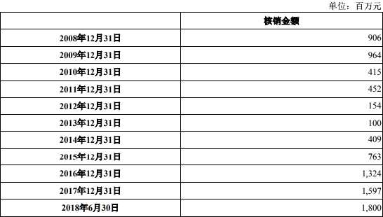 據智通財經網,據招股書披露,自2008年重慶農商行正式設立以來,每年該行都要將貸款的賬面本金與回收金額間的差額進行核銷,沖減相應的貸款減值準備。從2008年到2017年,重慶農商行各年度末的不良貸款核銷金額分別為9.06億元、9.64億元、4.15億元、4.52億元、1.54億元、1.00億元、4.09億元、7.63億元、13.24億元和15.97億元。