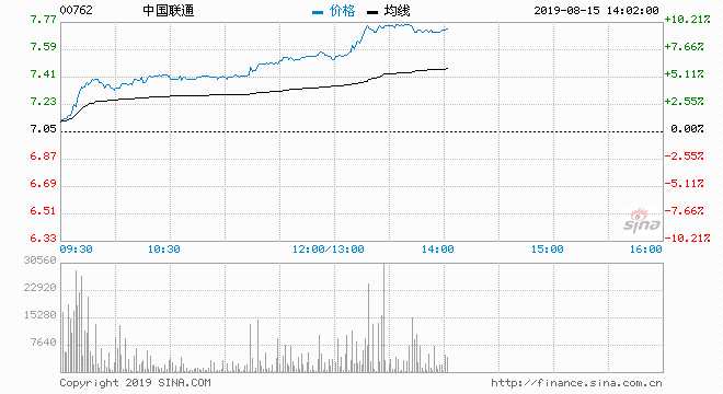 中國聯(lián)通(00762) 7.75元 升9.93%