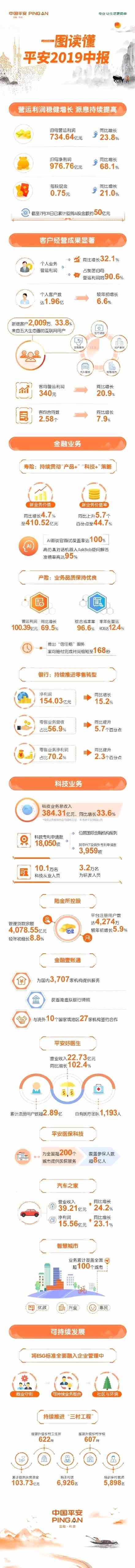 半年報(bào)顯示,2019年上半年,中國(guó)平安實(shí)現(xiàn)歸屬于母公司股東的營(yíng)運(yùn)利潤(rùn)734.64億元,同比增長(zhǎng)23.8%,非年化營(yíng)運(yùn)ROE為12.3%。實(shí)現(xiàn)歸母凈利潤(rùn)976.76億元,同比增長(zhǎng)68.1%。