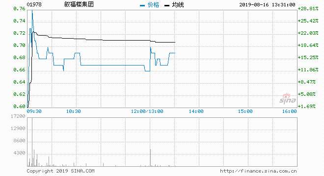 敘福樓集團(01978)現(xiàn)價上升16.95%,報0.69元;成交約629萬股,涉資446萬元,主動買盤78%。