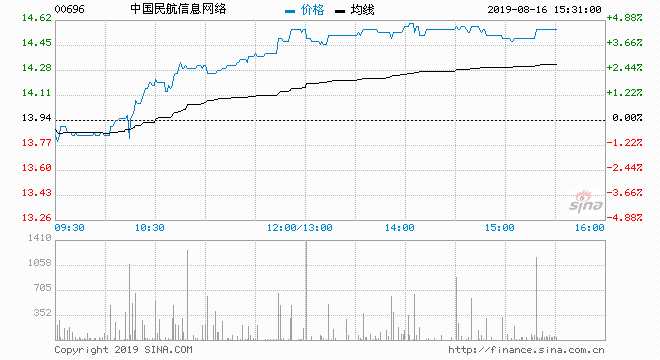 中國(guó)民航信息網(wǎng)絡(luò)(00696)現(xiàn)價(jià)升4.45%,報(bào)14.56元;成交約318萬(wàn)股,涉資4511萬(wàn)元。
