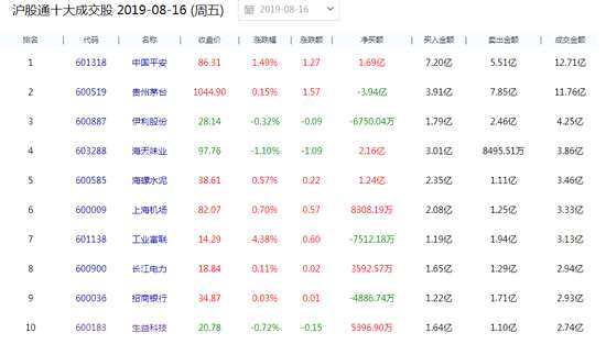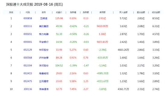 8月16日消息,北上資金今日凈流出2.18億元,其中,凈買入五糧液(000858)2.91億元、海天味業(yè)(603288)2.16億元,中國平安、海螺水泥(600585)、格力電器(000651)獲逾1億元凈買入;凈賣出貴州茅臺(tái)(600519)3.94億元、中環(huán)股份(002129)2.39億元,信維通信(300136)、洋河股份(002304)遭逾1億元拋售。