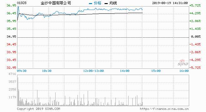 金沙中國 (01928) 36.80元 升5.29%