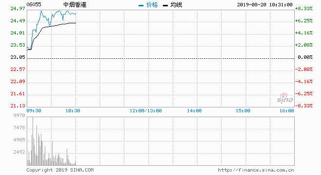 摘要: 中煙香港(06055)現(xiàn)價上升8.24%,報24.95元,升破10天(23.905元)及20天線(24.19元);成交約787萬股,涉資1.90億元,主動買盤68%。