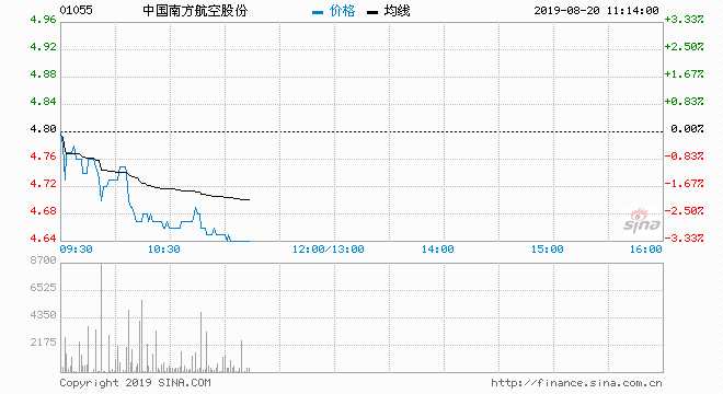 摘要: 南方航空(01055)H股現(xiàn)跌2.92%,報(bào)4.66元;成交約666萬(wàn)股,涉資3143萬(wàn)元。A股(滬:600029)現(xiàn)價(jià)6.83元人民幣,跌0.73%,成交7089萬(wàn)元人民幣,涉及1033萬(wàn)股.