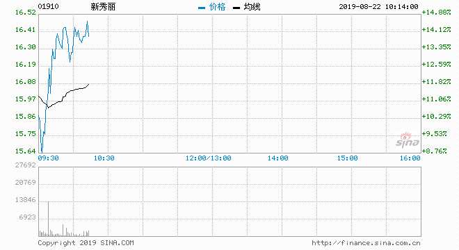 新秀麗 (01910) 16.36元 升13.77%