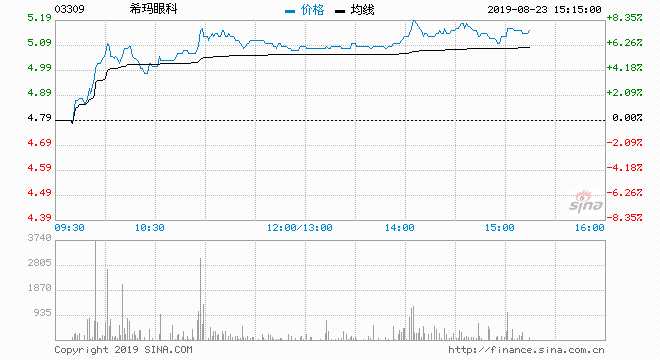 8月23日消息,?,斞劭疲?3309.HK)午后拉升,現漲8%,公司將于下周二公布業(yè)績。此前,希瑪眼科發(fā)布業(yè)績盈喜預告,根據前5個月的賬目,預期截至2019年6月30日止6個月凈利潤同比增加超過100%。