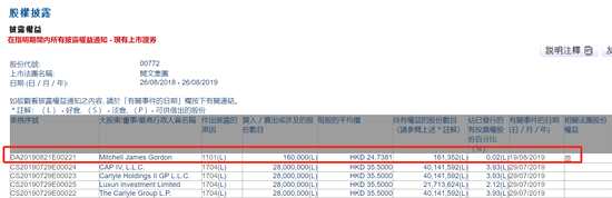 摘要: 8月26日消息,港交所披露易顯示,8月19日,閱文集團(tuán)(0772.HK)董事會(huì)主席JamesGordonMitchell增持160,000股閱文股票,均價(jià)24.7381港元,目前持股0.02%,合計(jì)1