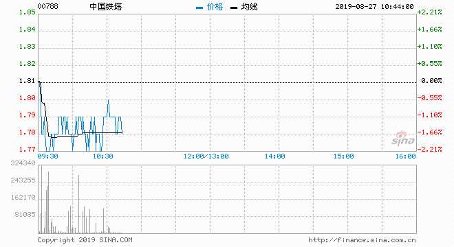 中國鐵塔(00788)現(xiàn)價(jià)跌1.66%,報(bào)1.78元,連跌四日累挫4.8%,盤中低見1.75元;成交約1.94億股,涉資3.45億元。