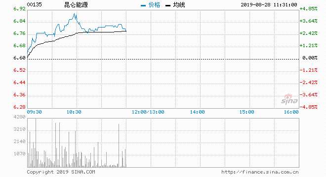 摘要: 昆侖能源(00135)現(xiàn)升3.33%,報(bào)6.82元,盤中高見6.9元,破十天線(6.652元)、廿天線(約6.647元);成交約784萬股,涉資5316萬元。公司中期純利輕微增加1.65%至31.43