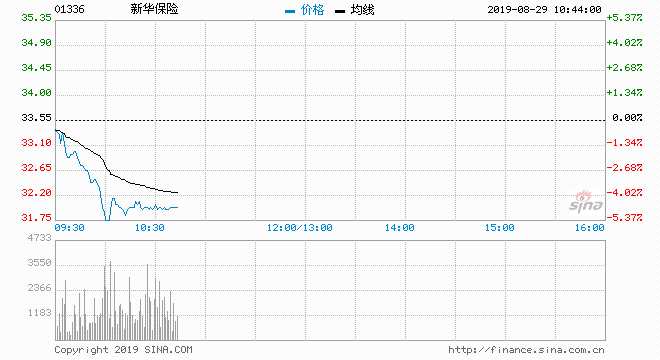 新華保險(01336) 32.050元 跌4.471%