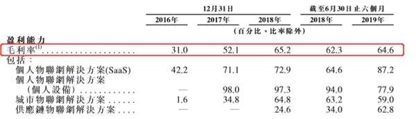 分業(yè)務(wù)板塊來看,2019年上半年,毛利率最高的是個人物聯(lián)網(wǎng)解決方案SaaS,為87.2%,其次為個人物聯(lián)網(wǎng)解決方案個人設(shè)備,為77.9%,城市物聯(lián)網(wǎng)解決方案及供應(yīng)鏈物聯(lián)網(wǎng)解決方案分別為59%及62.8%。