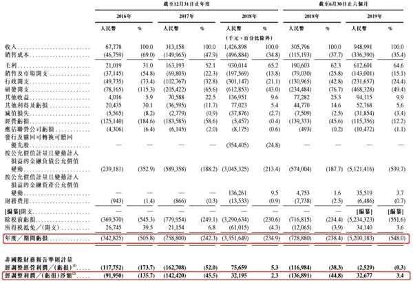 不過,公司持續(xù)虧損且幅度不斷擴大,2016、2017、2018以及2019年上半年,公司期內(nèi)虧損分別達到3.42億、7.58億、33.5億、52億元。